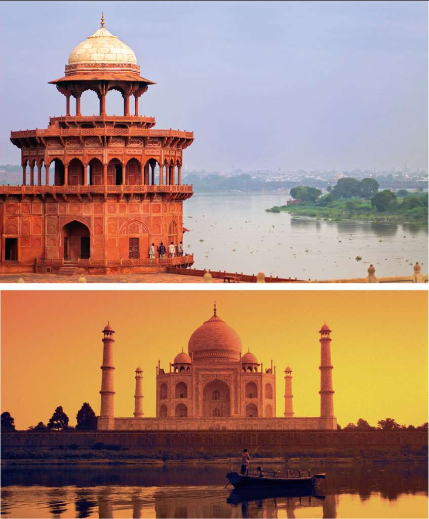 Œuvre suprême de l’art musulman, ce mausolée fut construit en 1631 près d’Agra par Shah Jahan comme tombe pour son épouse préférée, Mumtaz Mahal. Il y est également enterré. L’extérieur est décoré d’arabesques et de textes du Coran incrustés de pierres précieuses… Sur sa vaste terrasse de marbre s’élèvent quatre élégants minarets.